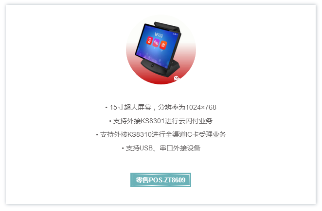 本次展會上,智能POS-KS8223、手持POS-ZT8225、零售POS-ZT8609以及金屬密碼鍵盤EPP 598M、596F等主打支付產品悉數亮相,其中零售POS-ZT8609及其針對當地市場推出的系列方案尤為受到關注。這是一款小店大連鎖綜合ERP管理終端,可支持連鎖門店的業務管理、互通,大大方便經營者對旗下店鋪實施統一管理和業務統計。