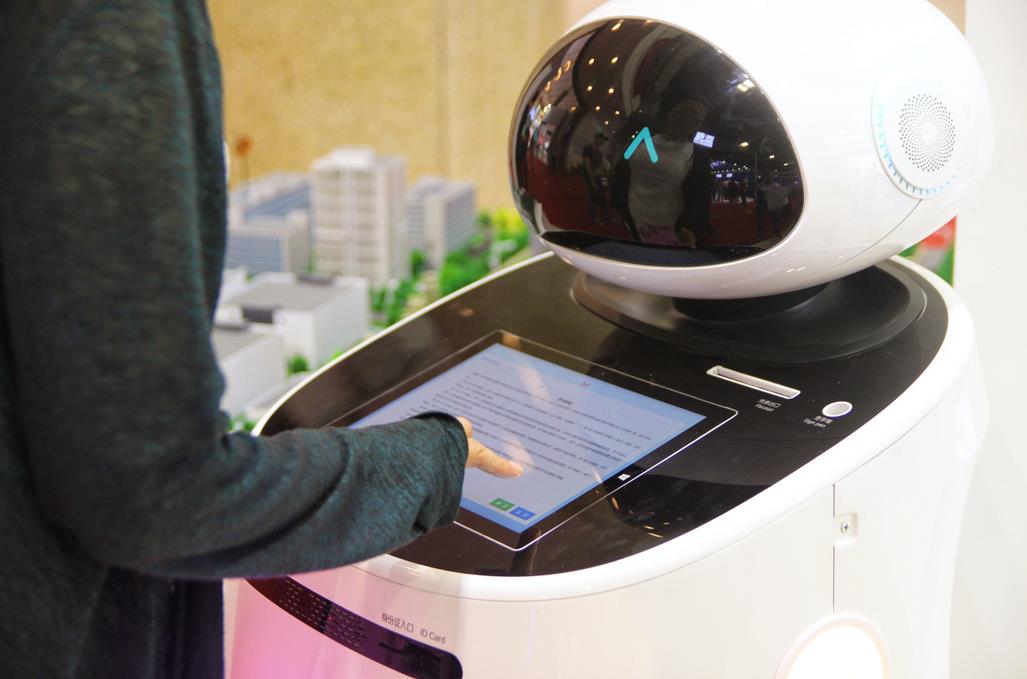 步入展廳,觀眾做的第一件事就是對銀行服務機器人小僮開啟“圍觀模式”,有跟他“嘮嗑”的,有用它辦理銀行業務的,也有駐足與他拍照合影的,炫白的機器外殼、胖萌胖萌的身材以及靈活的移動路線規劃,搭配上科技感的LED燈光,瞬間吸引了全場的關注目光,工作人員向觀眾分別展示了人機語音交互、自主智能避障/規劃、銀行業務辦理以及強大的云端管理系統,并介紹到小僮的高度是根據客戶的坐姿高度而設計,可以很好地貼合用戶辦理業務時的操作習慣,現場觀眾在體驗中完成了對機器人產品性能與優勢的了解,甚至于對小僮有些“愛不釋手”。