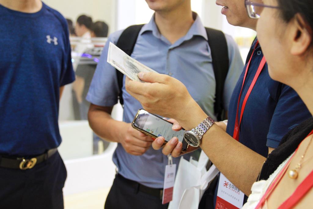 同時,這款機器還頗具創新地加入了現金模塊,使其在辦理非現金業務的同時也能進行銀行卡、存折存取款的辦理,可謂是匠心獨具。展會中還發生了一個小插曲,由于人氣太旺,機器中提前預備好的數千元“微信提現”鈔票被觀眾全部提取完,工作人員補鈔忙不停。