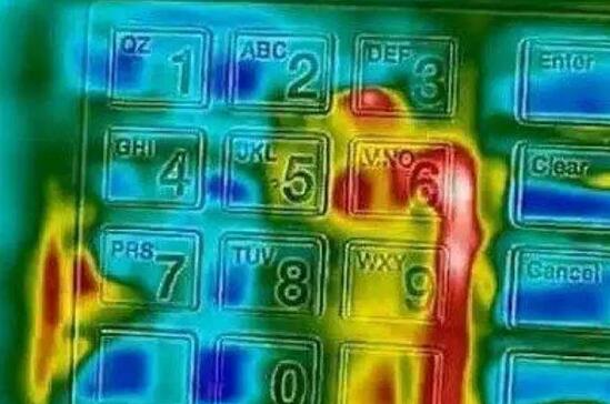 2普通材質的鍵盤大家在按下數(shù)字之后,鍵盤的表面會因溫度的不同而產(chǎn)生顏色深淺不等的印記,利用熱感應設備可以清楚的分辨出您的密碼順序。金屬鍵盤就是為了防止讓犯罪分子有機可乘而設計的,金屬鍵盤的特點是技術導電率高,溫度變化快,就算有人用熱感應設備拍下照片,也很能根據(jù)顏色的深淺來判斷數(shù)字的順序,以達到防盜的目的。